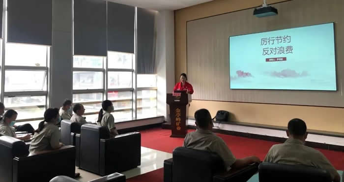 第一步是經(jīng)營層、黨員干部率先垂范,走好“榜樣”帶頭。通過“三會一課”、中層干部專題會、車間班前班后會等形式,把典型榜樣和優(yōu)秀節(jié)儉節(jié)約經(jīng)驗心得在內(nèi)部網(wǎng)站和企業(yè)大屏實時分享。