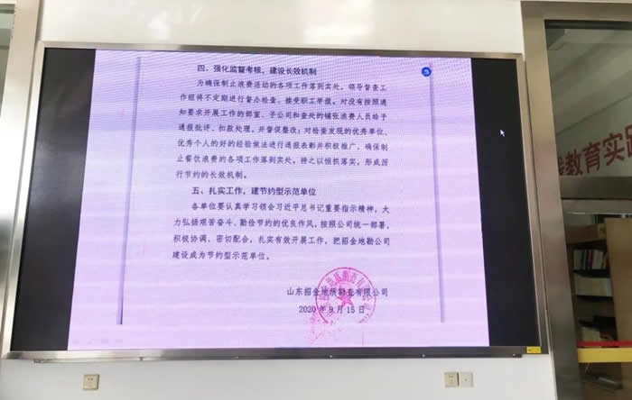 通過召開會議、大屏幕滾動指示文件等方式,提高廣大干部職工勤儉節(jié)約的意識,同時鼓勵廣大員工培養(yǎng)文明就餐好習(xí)慣,杜絕浪費,鼓勵光盤行為。