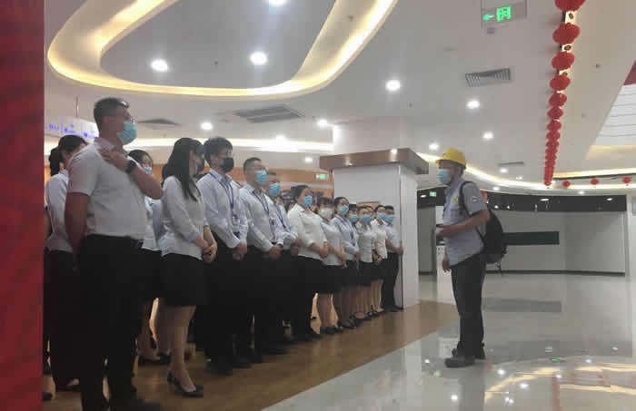 電梯安全應(yīng)急救援迅速及時(shí)。本次演練模擬了招金廣場中人員鞋帶卷入自動(dòng)扶梯、客梯發(fā)生困人事故,工作人員展開應(yīng)急救援。演練中工作人員緊急制動(dòng)扶梯,解救摔倒人員,查看受傷狀況,安撫情緒,隨后對(duì)扶梯發(fā)生事故原因進(jìn)行排查??吞堇搜菥氈斜O(jiān)控室值班人員接到由電梯內(nèi)的緊急報(bào)警裝置發(fā)出的求救信號(hào)后,不間斷安撫被困者情緒,并即刻通知電梯維保單位進(jìn)行應(yīng)急救援。救援人員到達(dá)現(xiàn)場后,在被困電梯位置處安放警示標(biāo)志,確認(rèn)了轎廂所在位置,手動(dòng)盤車使電梯平層,安全將被困人員救出,隨即對(duì)電梯發(fā)生故障困人的原因進(jìn)行排查。