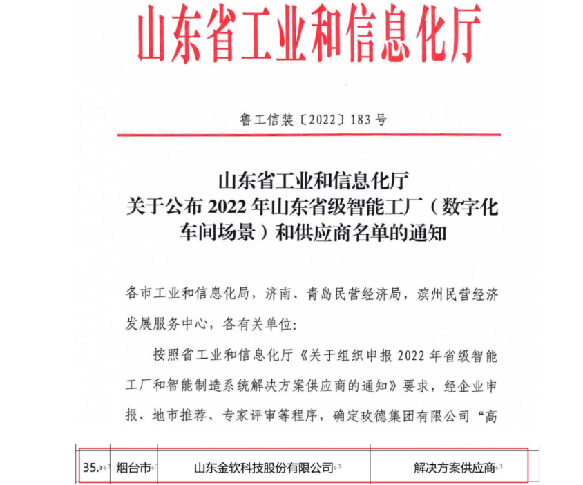 金軟科技成功入選2022年山東省省級智能制造系統(tǒng)解決方案供應商名單