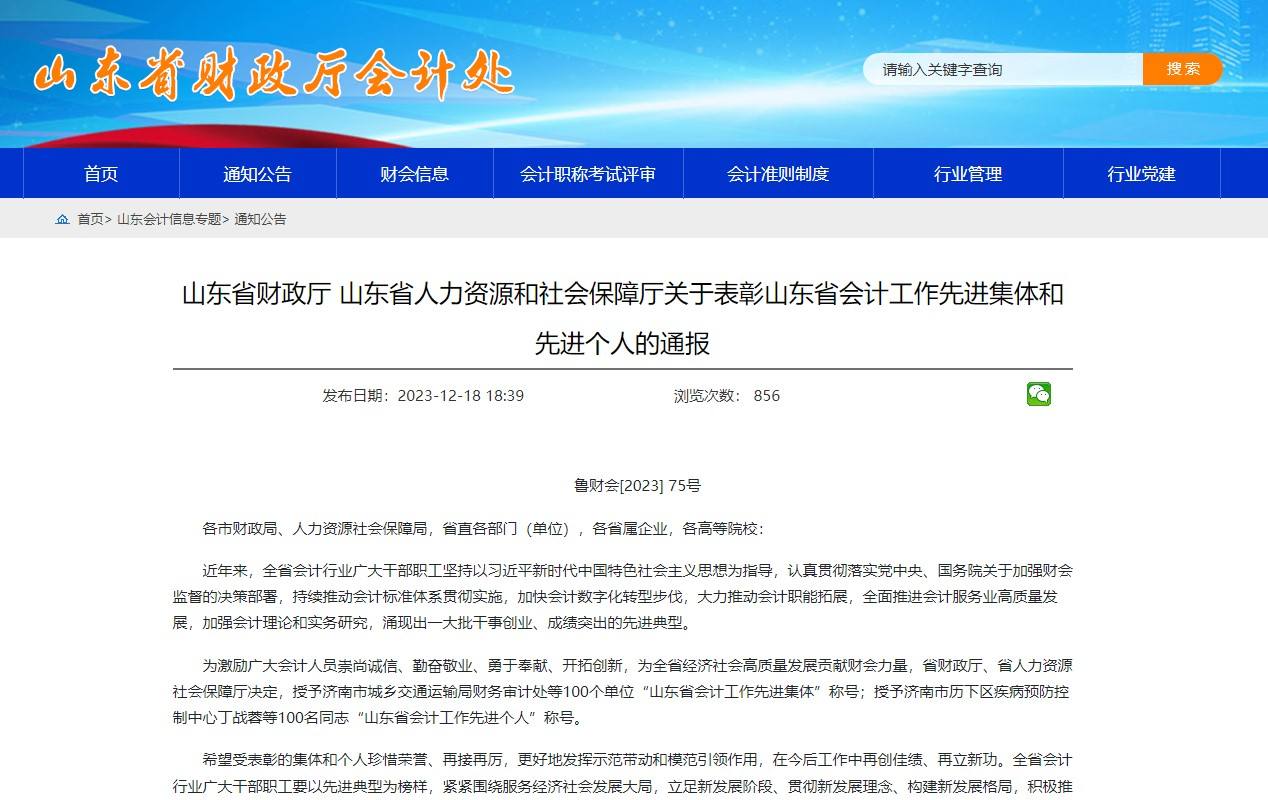 招金集團獲得“山東省會計工作先進集體”榮譽稱號